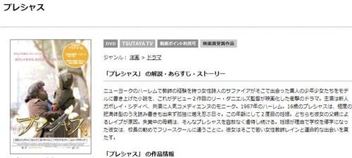 映画「プレシャス」の無料動画の視聴方法を確認しました。