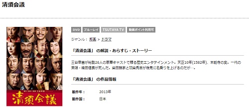 『清須会議』が、Amazonプライムビデオ・Netflix・hulu・dTVなどで無料視聴ができるのかを調査しました。