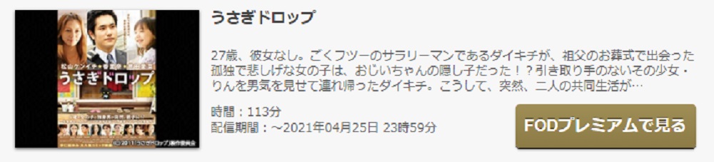 映画「うさぎドロップ(実写)」の無料動画の視聴方法を確認でした。