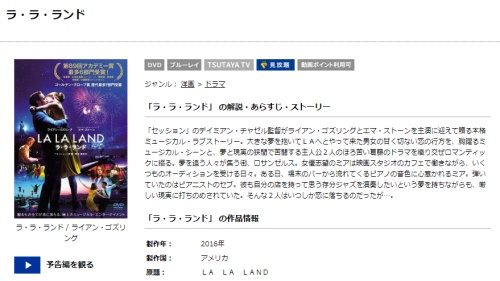 映画「ラ・ラ・ランド」の無料動画の視聴方法を確認しました。
