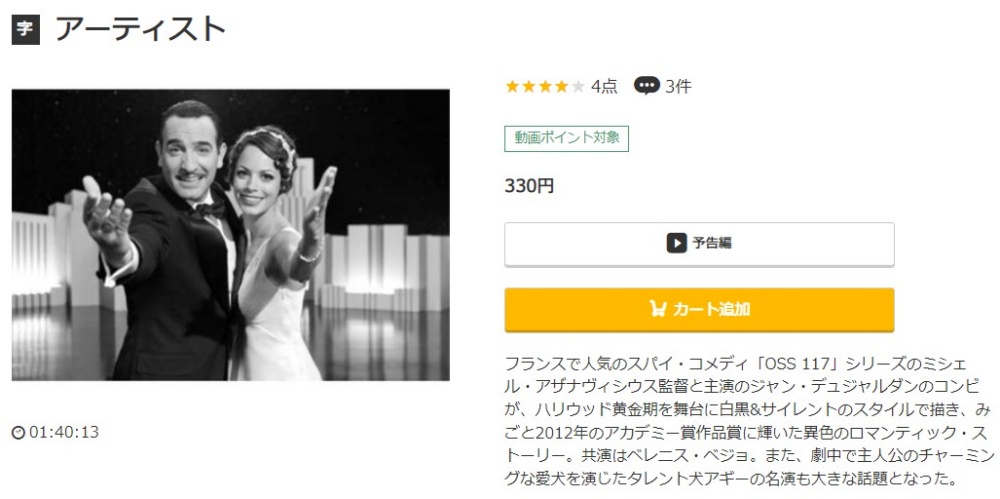 動画配信サイトで『映画 アーティスト』の無料動画がフル視聴できる確認し一覧にまとめました。