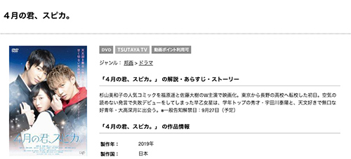 映画「4月の君、スピカ。」の無料動画の視聴方法を確認しました。
